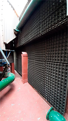 Se optó por placas fonoabsorbentes FONAC PRO de 50 mm de espesor, para colocarse en primer lugar sobre el muro y una vez instaladas las chapas, se colocaron las mismas placas fonoabsorbentes en la cara vista hacia las torres de enfriamiento para disminuir reflexiones hacia los edificios vecinos.